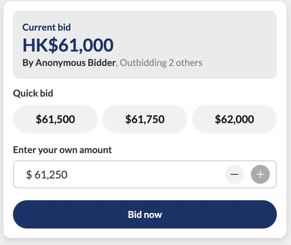 • On the auction site, bidders will be able to see the Current Highest Bid and Bidder Name (if not anonymous).