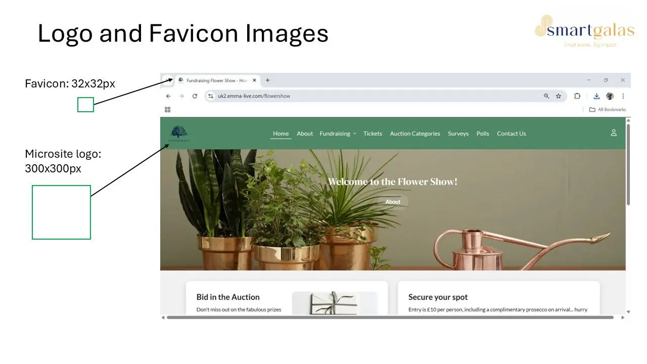 - Microsite logo: 300x300px (For logo images the height can be less than the suggested pixels since it is dynamic)